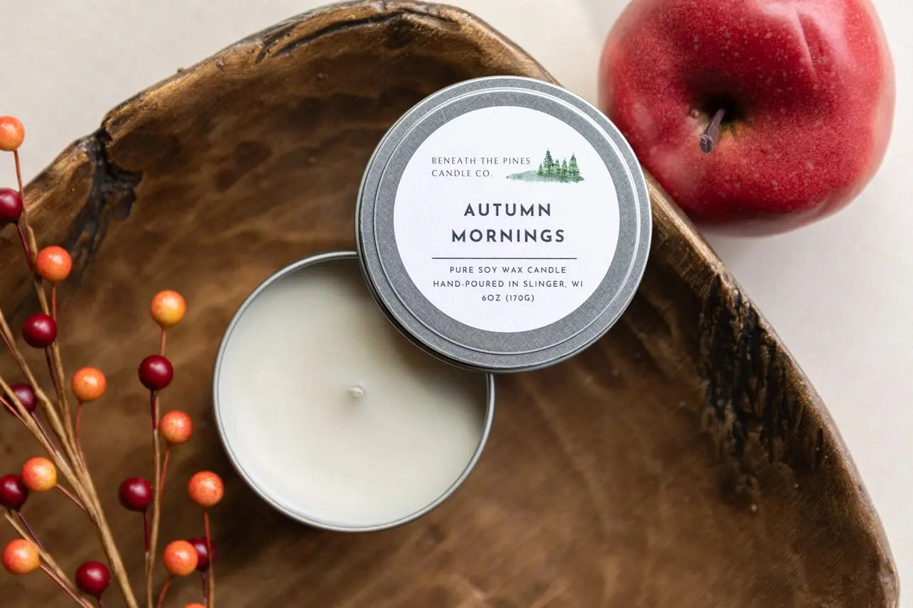 Experience the comforting warmth of Autumn Mornings. With notes of orange, cinnamon, clove, and nutmeg, this scent brings a cozy atmosphere into your home. Transition from summer to winter or simply enjoy the cozy autumn vibes any time of year with this perfect blend of apple, musk, and lush fall foliage.
