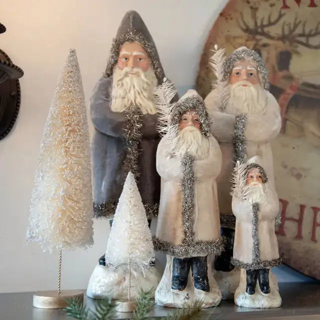 Immerse yourself in the timeless elegance of the 12" Ivory Velvet Belsnickle by Ragon House. Standing at a refined height of 12.25 inches and adorned in luxurious velvet, this exquisite piece captures the magic of a vintage Christmas. Perfectly sized at 4 inches in length and width, it brings a touch of old-world charm and sophistication to your holiday décor, echoing the enchantment of Saint Nick himself.