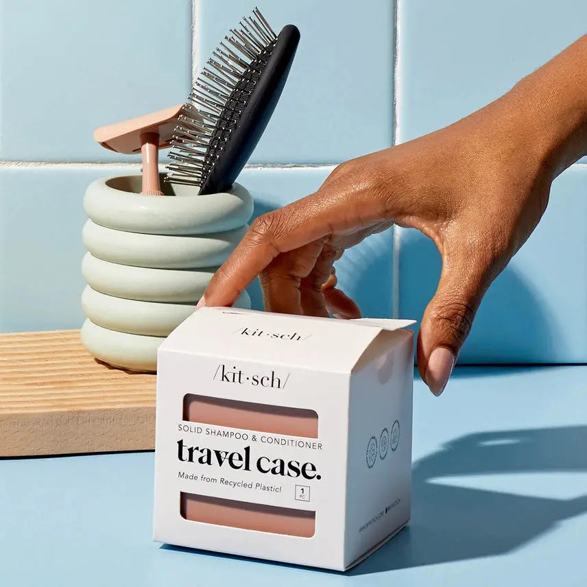 - Compact travel case fits 2 bars (compatible with Kitsch Solid Shampoo & Solid Conditioner)