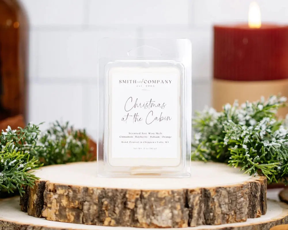 Christmas At the Cabin Wax Melts Notes of cinnamon, bayberry, balsam, and orange, it’s like cozying up in a woodland cabin, surrounded by loved ones and the festive scents of the season. Pure holiday joy in every whiff!